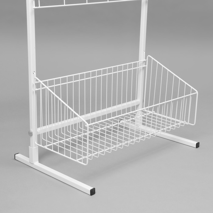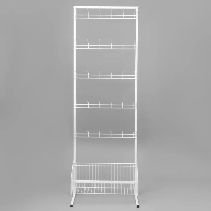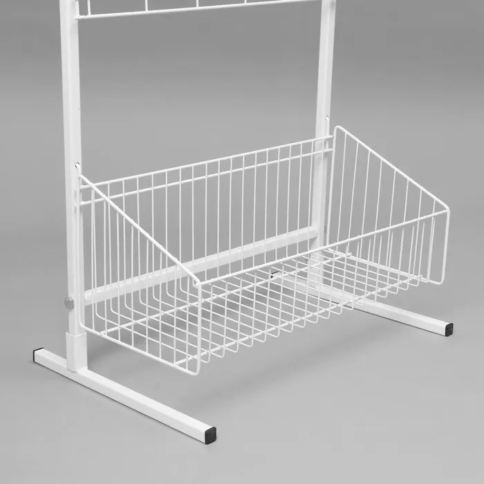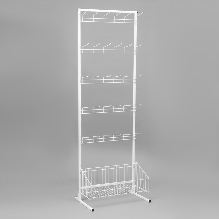 Эта стойка выполнена в белом цвете, что придаёт ей современный и привлекательный вид, а также позволяет легко сочетаться с любым интерьером. Наличие крючков обеспечивает дополнительное место для размещения товаров, таких как аксессуары, мелкая бижутерия или снэки, что способствует увеличению продаж.