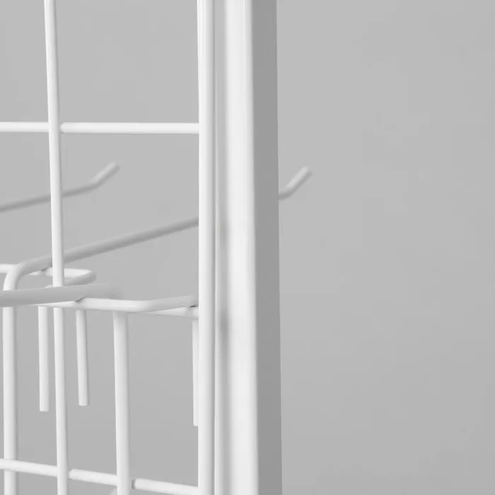 Изготовленная из прочного металла, стойка обеспечивает надежную поддержку и долговечность. Белый цвет добавляет стильности и позволяет легко вписаться в любой интерьер торговой площади.