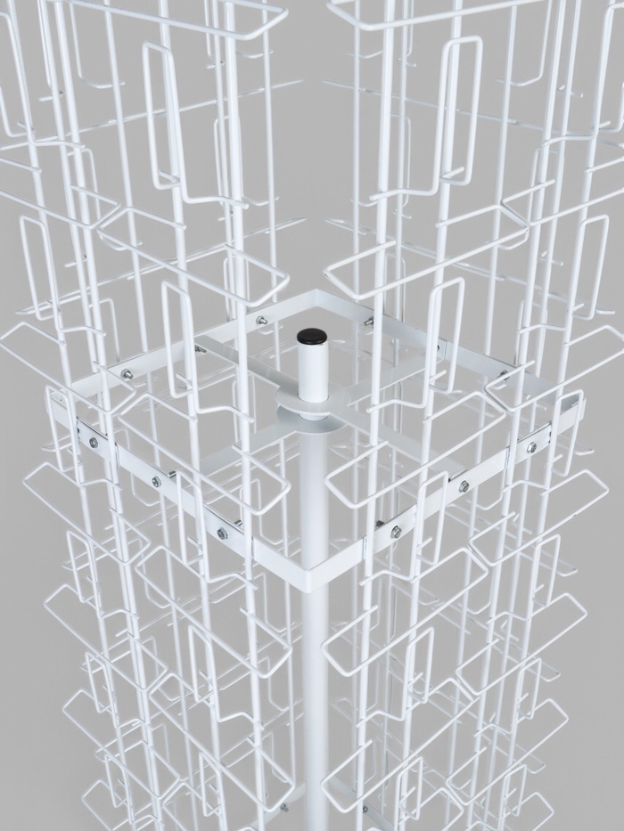 Стойка предназначена для выкладки печатной продукции, в том числе открыток, буклетов, конвертов. Подходит для различных магазинов, витрин-островков в торговых центрах и павильонов с подарочной продукцией, например, цветочных.