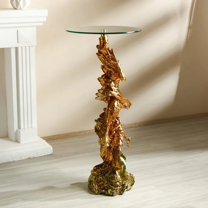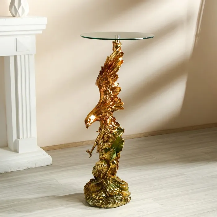 Стол декоративный "Ястреб на скале" золото и серебро 45х45х104 см — Характеристики