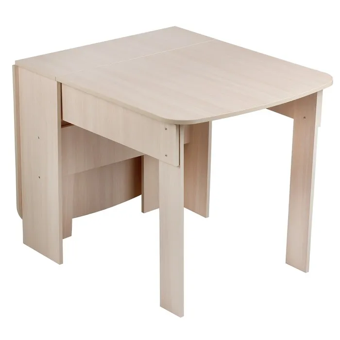 Стол-книжка пользуется популярностью вот уже не одно десятилетие из-за своей компактности и функциональности. Данная модель занимает совсем немного места и в одно мгновение превращается из компактного столика в большой обеденный. А после трапезы вы можете вернуть его на прежнее место.