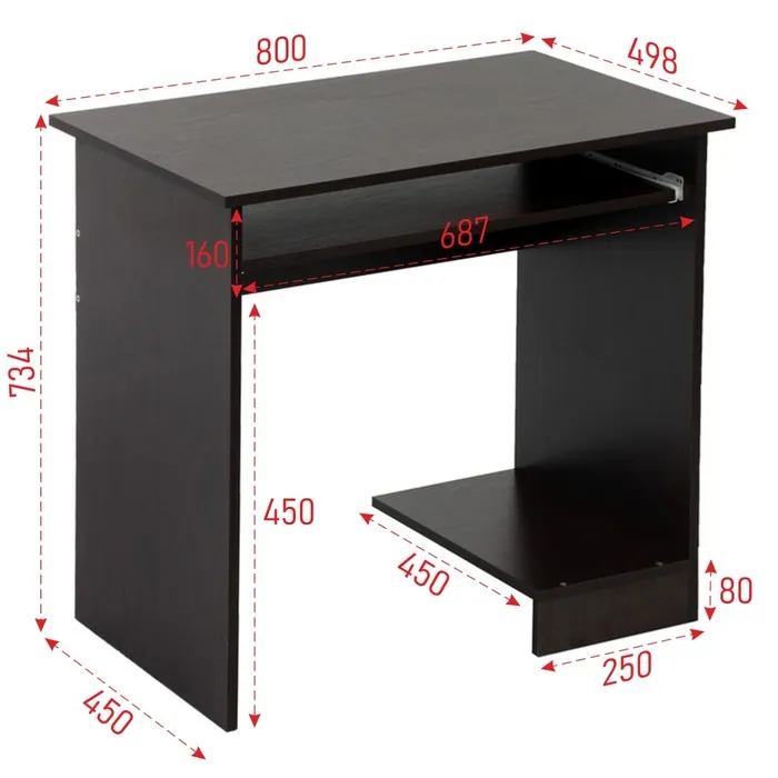 Стол компьютерный 800х500х750 Венге темный — Характеристики