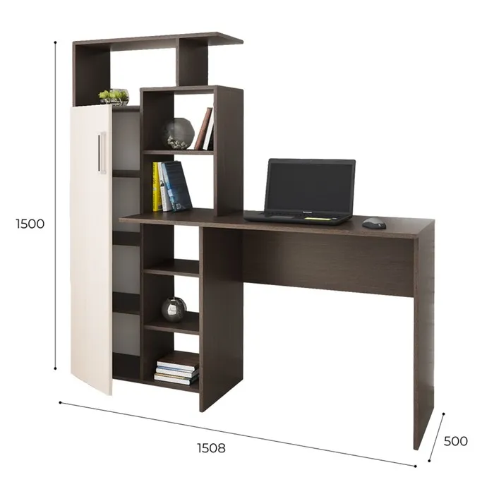 Стол компьютерный Квартет-7 1508х500х1500 венге/дуб молочный — Характеристики
