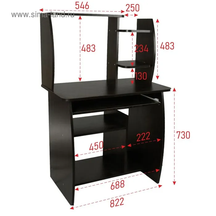Стол компьютерный Малый 820х480х1265 Венге темный — Характеристики
