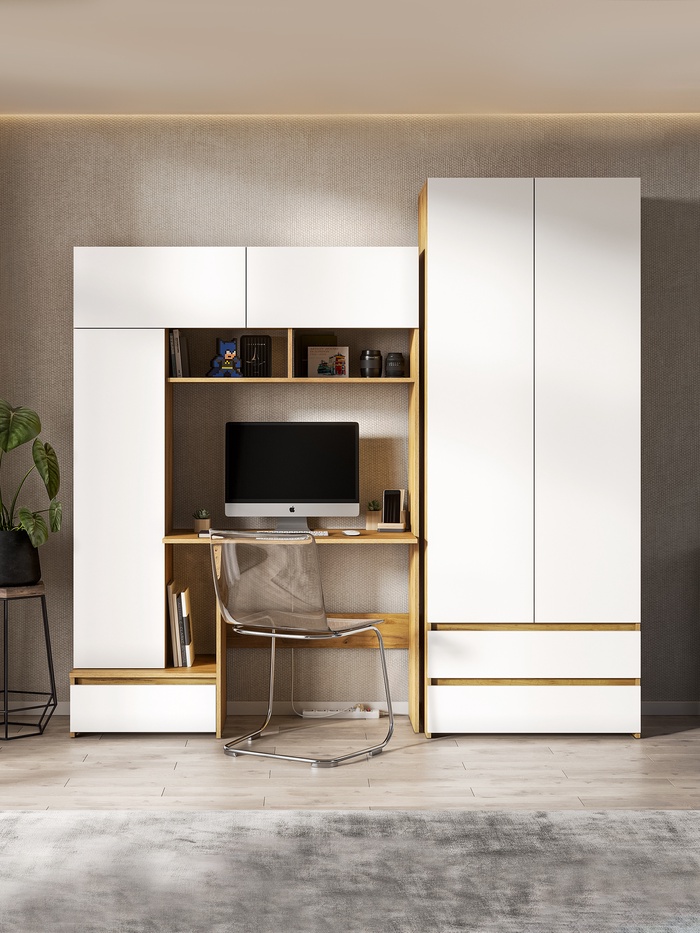 Функциональный и современный компьютерный стол «Некст 1» станет решением для организации рабочего места. Конструкция включает вместительные ящики и полки, позволяющие удобно разместить документы, книги, аксессуары и оргтехнику. Лаконичный дизайн и белый фасад отлично впишутся в интерьер квартиры, офиса или кабинета, создавая аккуратное и стильное пространство.