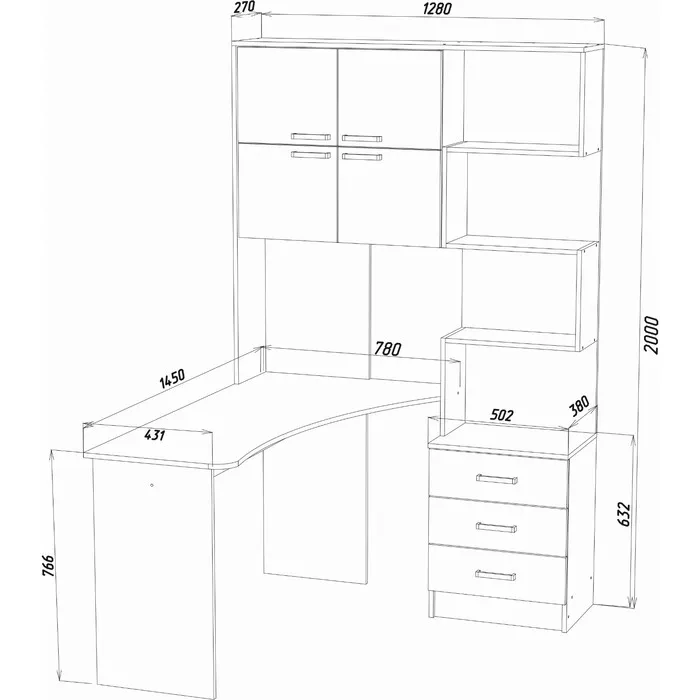 Стол компьютерный №1 Левый, 1280х2000х1450, Венге/Белфорт — Характеристики