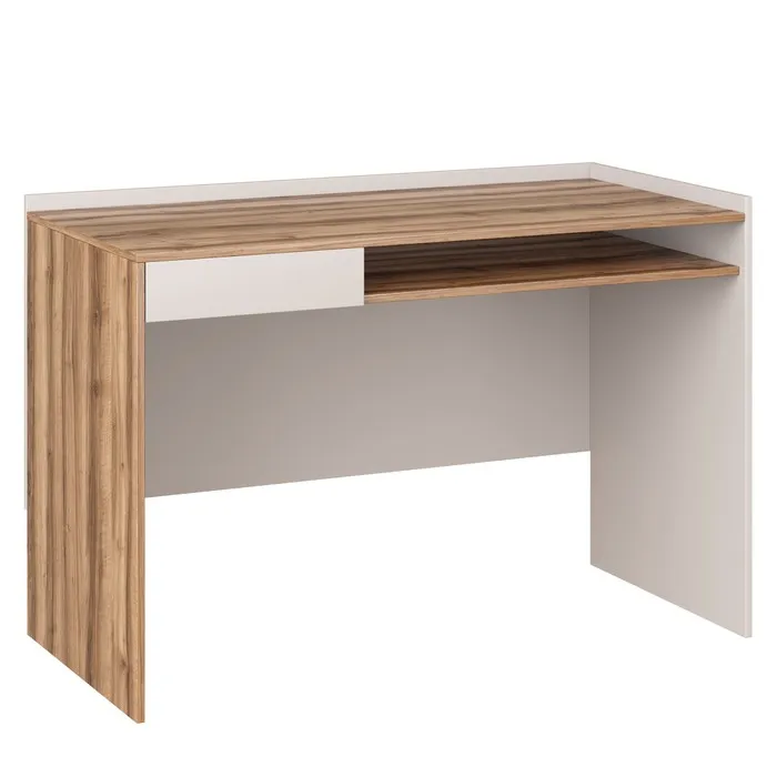 Стильное и функциональное решение для организации рабочего пространства. Стол выполнен в современном дизайне, сочетающем белый цвет и золотистый дуб, что придает ему элегантный и модный вид.
