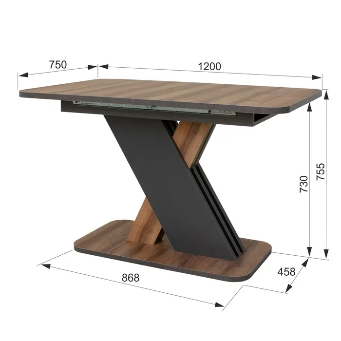 Стол кухонный раскладной Аврора, 1200(1600)х750х755, Авелано/Графит — Характеристики
