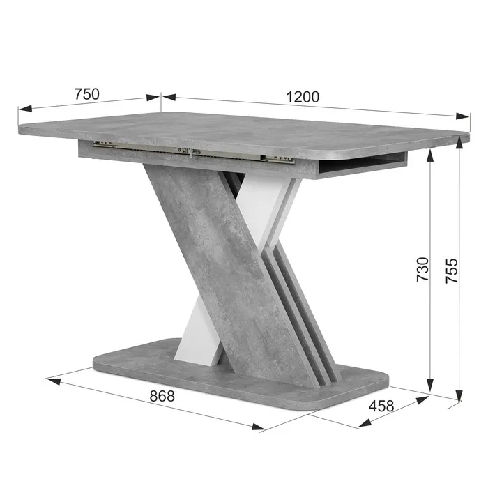 Стол кухонный раскладной Аврора, 1200(1600)х750х755, Цемент светлый/Белый — Характеристики