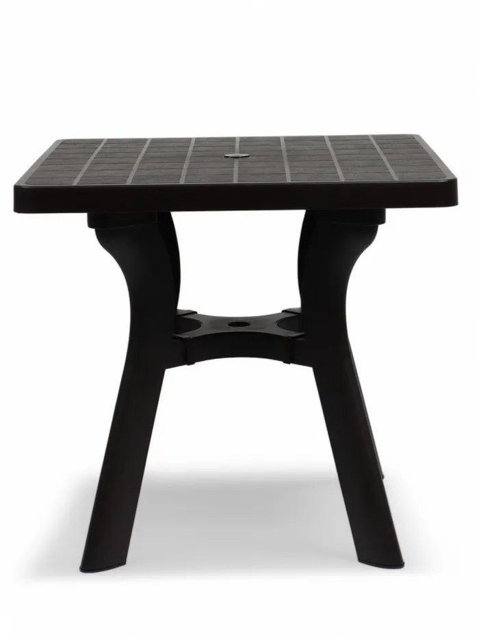 Квадратный стол «Атлант» (80×80×76,5 см) – это идеальное сочетание надежности, функциональности и эстетики. Его прочный пластиковый каркас и устойчивая конструкция выдерживают воздействие внешних факторов, сохраняя первоначальный вид долгие годы. Столешница с текстурой под дерево в оттенке «мокко» придает столу благородный вид, а скругленные углы делают его безопасным для всей семьи.