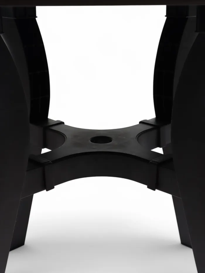 - Максимальная устойчивость: изогнутые ножки с крестовиной и регулировкой высоты обеспечивают надежную опору даже на неровных поверхностях.