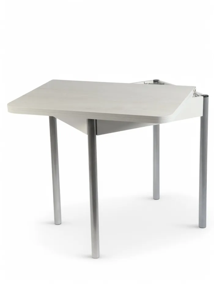 - Компактность: в сложенном виде стол занимает минимум места, что особенно важно для небольших квартир или комнат, где каждый сантиметр пространства на счету.