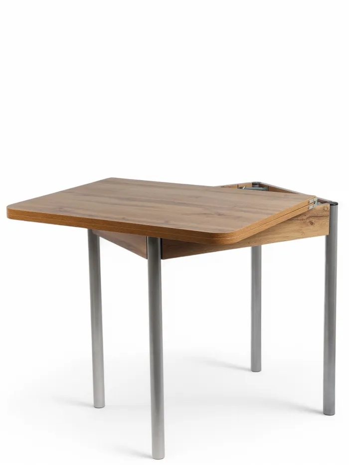 - Компактность: в сложенном виде стол занимает минимум места, что особенно важно для небольших квартир или комнат, где каждый сантиметр пространства на счету.