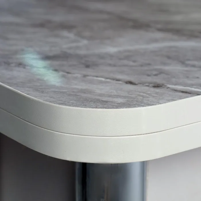 - Цвет (хром и мрамор серый): Современное сочетание цветов подчеркивает стильный дизайн стола, добавляя элегантности и современности в интерьер.