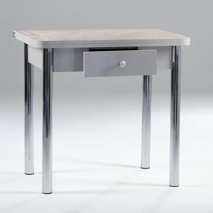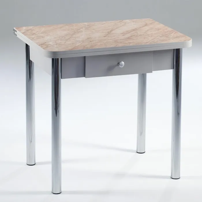 Стол ломберный с ящиком, 790(1180)х590×750 мм, цвет хром/пластик змеевик бежевый — Характеристики