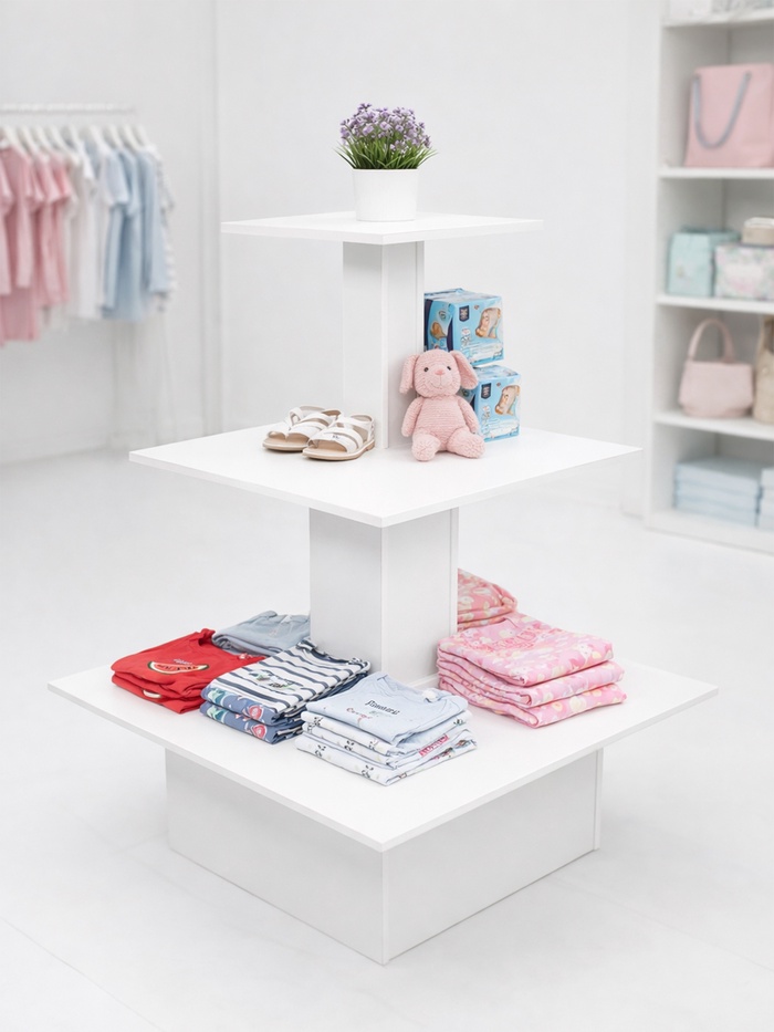 Прилавок открытый "Пирамида" с 3 ярусами, 90×90×116 см, ЛДСП, цвет белый — это функциональный и стильный элемент для организации торгового пространства. С размерами 90×90×116 см и тремя просторными ярусами, прилавок идеально подходит для демонстрации товаров, аксессуаров или других предметов, предоставляя легкий доступ для покупателей и поддерживая порядок в торговом зале.