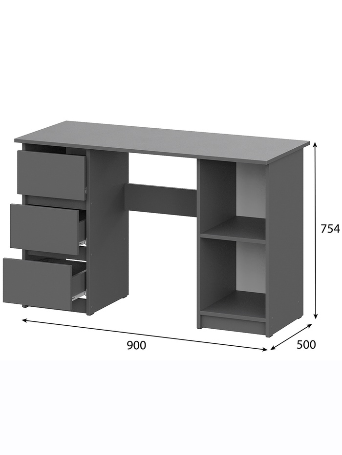 Стол письменный «Денвер», 3 ящика, 1201×500×754 мм, цвет графит — Характеристики