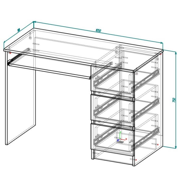 Стол письменный «Клик Мебель. Мадера», 3 ящика, 1050×500×750 мм, цвет дуб крафт золотой/белый — Характеристики