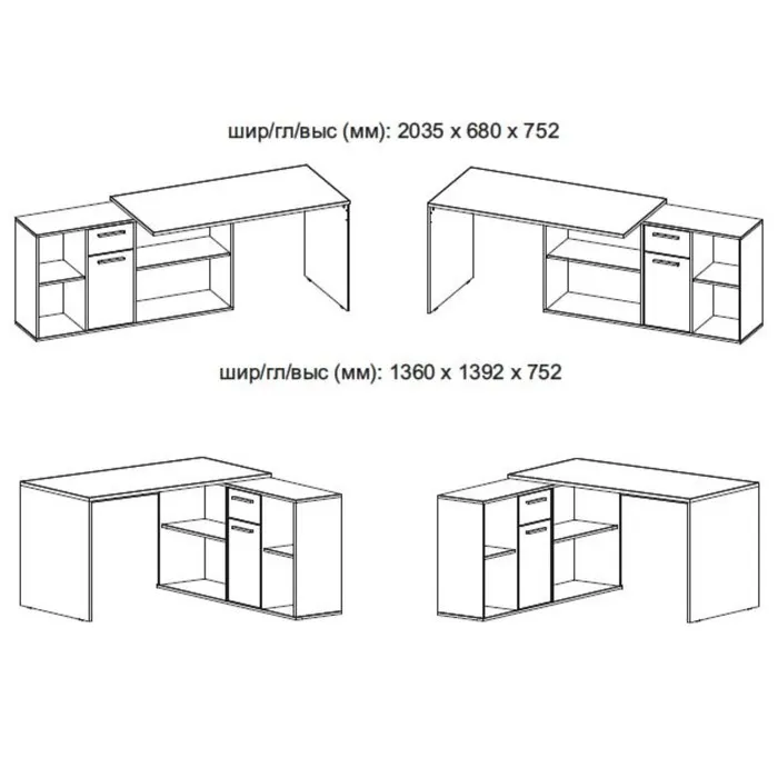 Стол письменный Лайт, 1360(2035)х1392(680)х752, Белый — Характеристики