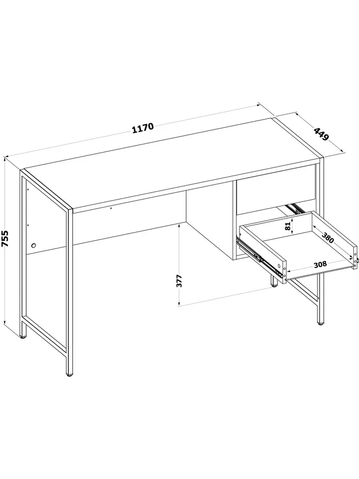 Поможет организовать удобное рабочее место даже на небольшой площади. Подходит для взрослых и подростков, обеспечивая комфорт и удобство.Модель компактна засчет столешницы и встроенной тумбы с двумя выдвижными ящиками. Для плавного и бесшумного открывания ящиков предусмотрены надежные шариковые направляющие, вместо привычных ручек сделаны стильные вырезы между фасадами. Металлические опоры с регулируемыми подпятниками и столешница толщиной 22 мм с противоударной кромкой сделают рабочий процесс максимально комфортным и продуктивным.