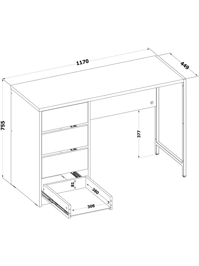 Стол письменный «Лофт», 4 ящика, 1170×446×755 мм, цвет дуб делано — Характеристики