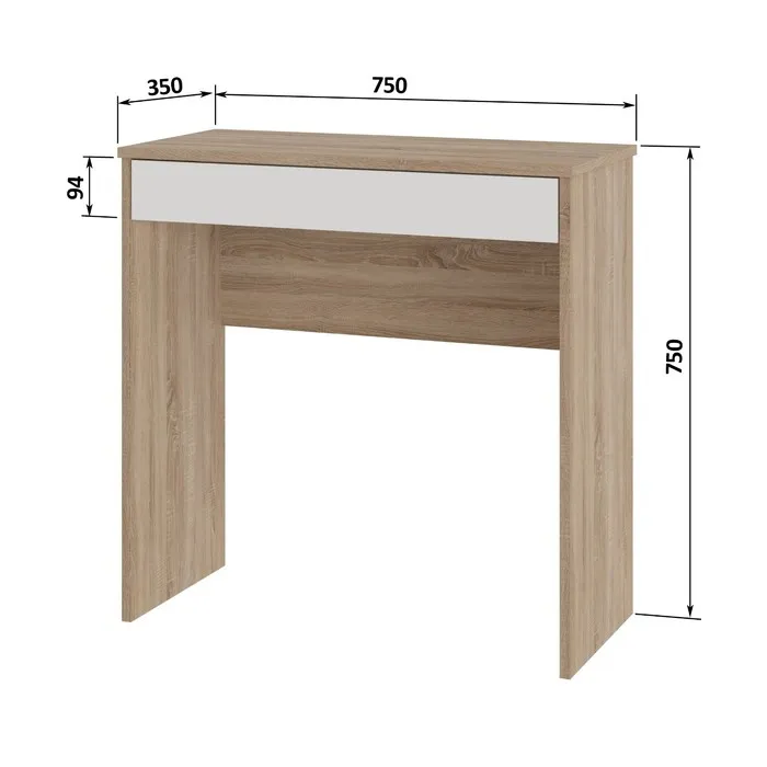 Стол письменный Нордик с ящиком, 750х350х750, Дуб сонома/Белый — Характеристики