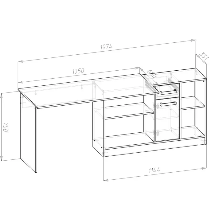 Стол письменный «СПЛ-1», 1350×1238×750 мм, серый графит — Характеристики