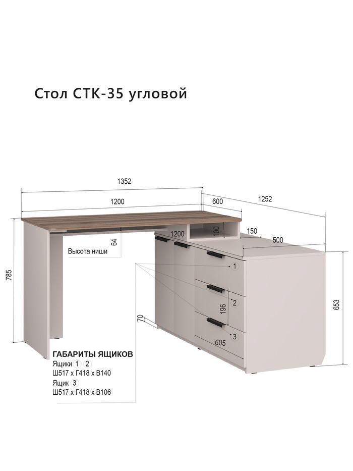 Стол письменный «СТК35», 1200×1200×785 мм, цвет кашемир/авелано — Характеристики
