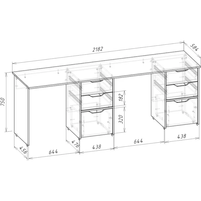 Стол письменный тандем Мико 0,75х2,18х0,59м — Характеристики