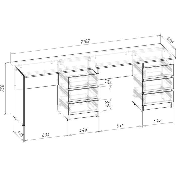 Стол письменный тандем «Зара», 750×2182×610 мм, цвет белый — Характеристики