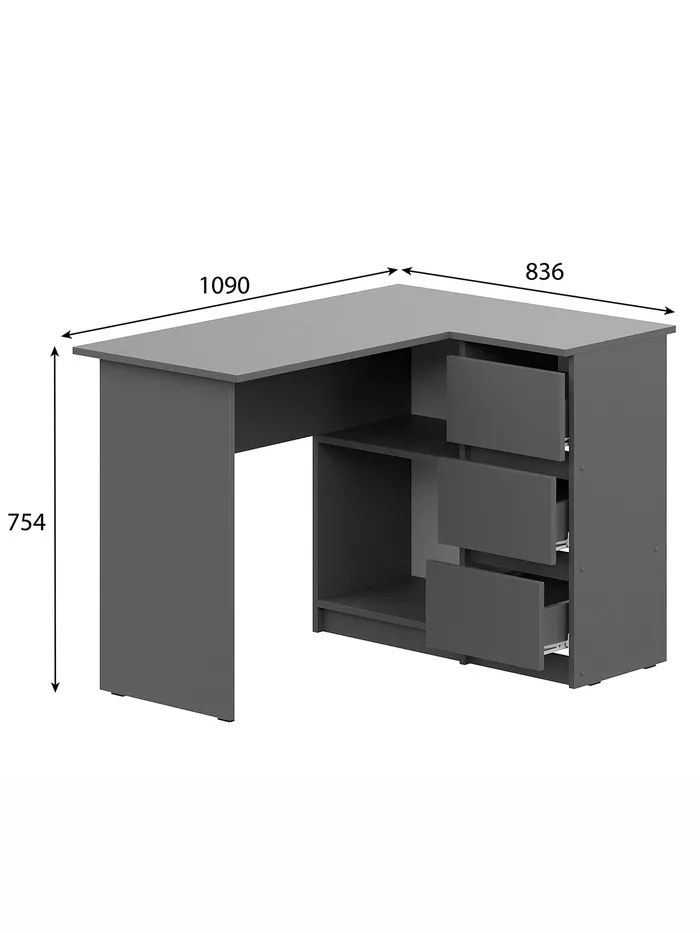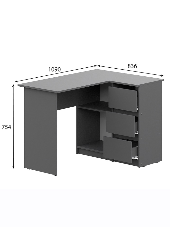 Стол письменный угловой «Денвер», 3 ящика, 1090×836×754 мм, цвет графит — Характеристики