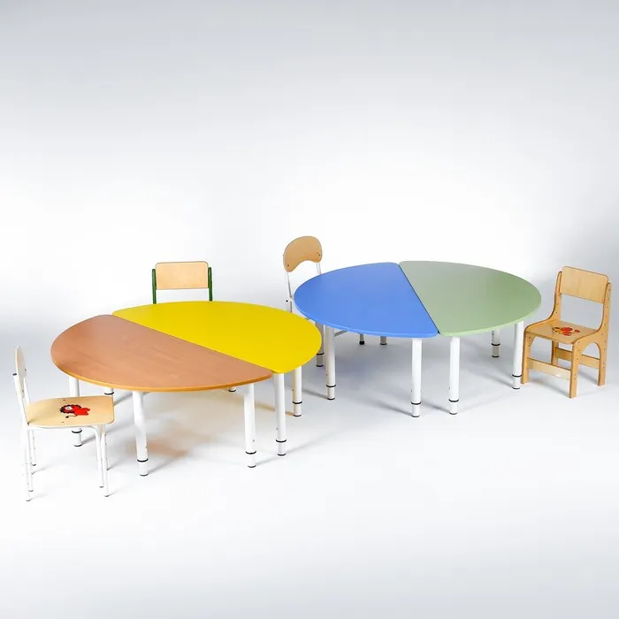 Растущий полукруглый стол на металлокаркасе – современное и практичное решение для детских учреждений и домашних игровых зон. Обеспечивает комфорт и безопасность для детей, а также помогает им развиваться и учиться в дружественной и интерактивной среде.