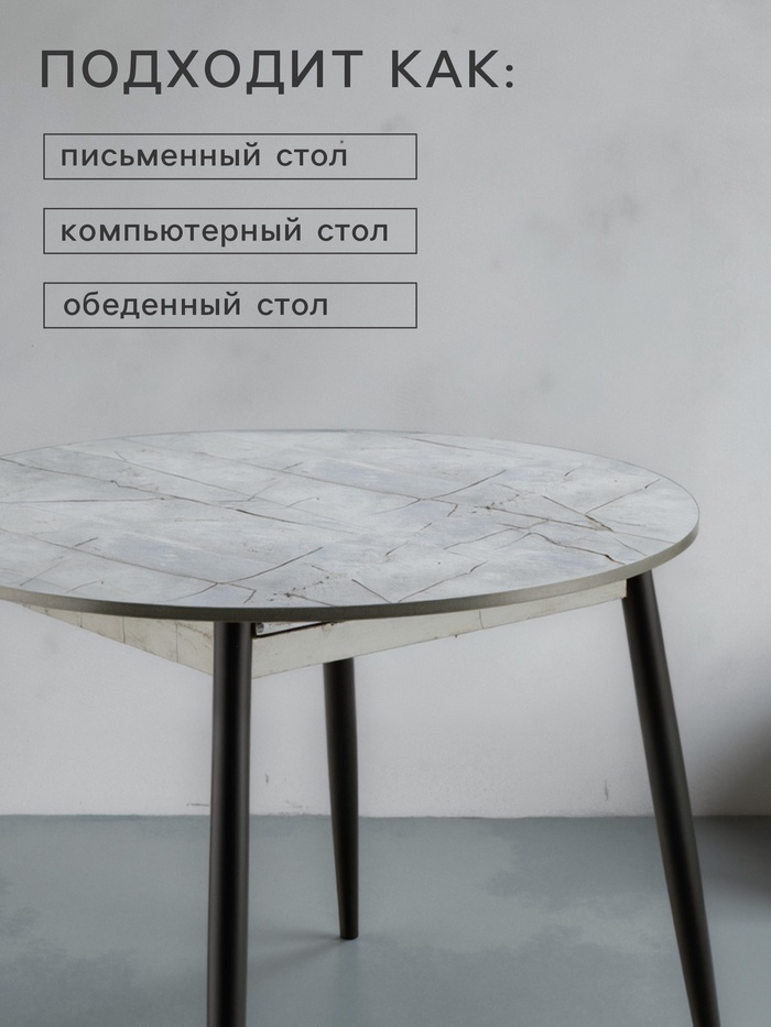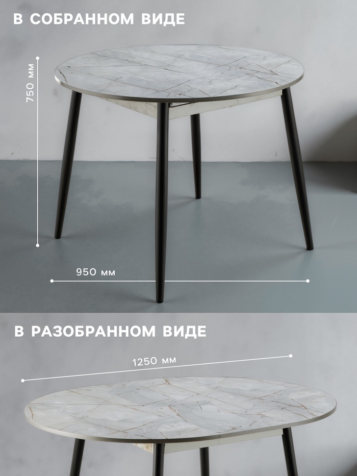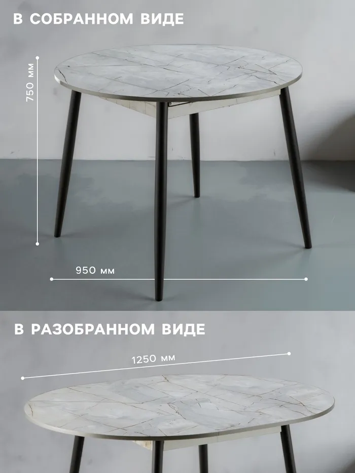 - Компактные размеры: В закрытом состоянии стол "Орион" имеет диаметр 950 мм, что позволяет сэкономить пространство в вашей кухне или столовой.
