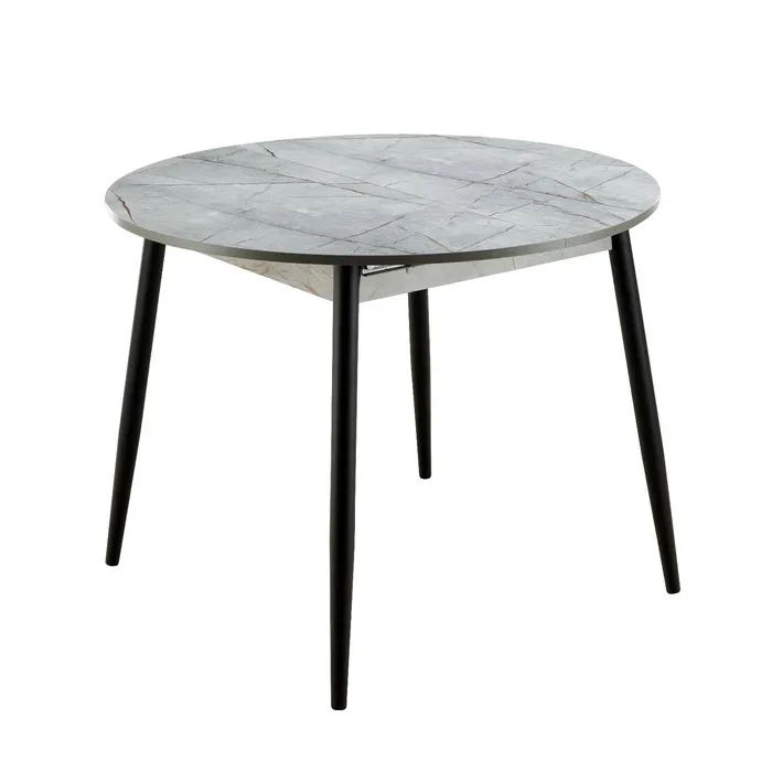 Стол раздвижной круглый «Орион», 950/1250×950×750 мм, ножки металл, цвет чёрный/каспий светлый — Характеристики