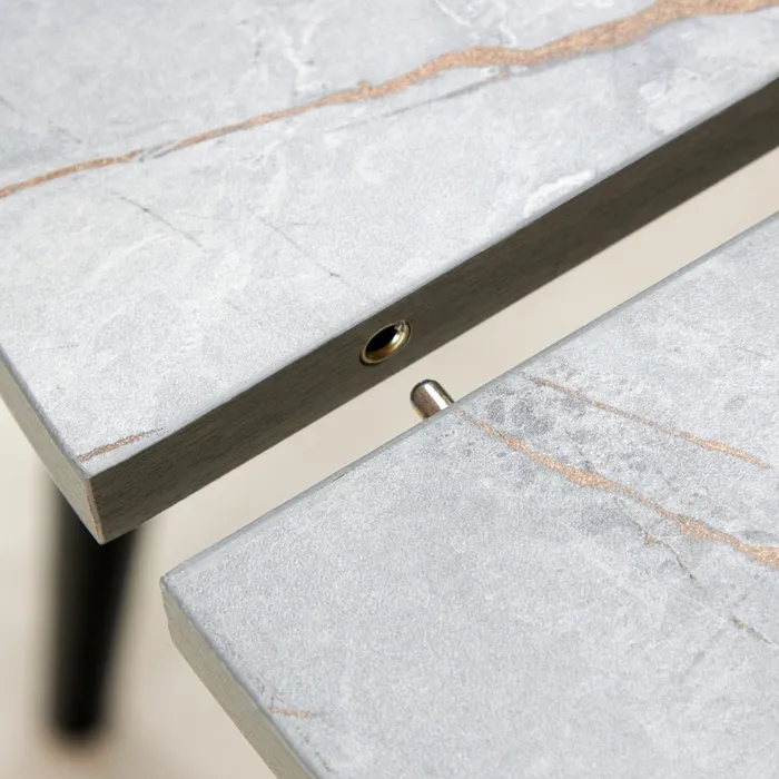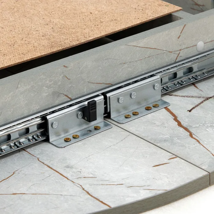 - Интеллектуальное расширение: Стол "Орион" обладает раздвижной столешницей, которая может быть легко увеличена с 950 мм до 1250 мм. Эта функция позволяет адаптировать стол к количеству гостей и сделать его идеальным решением как для небольших, так и для больших собраний.