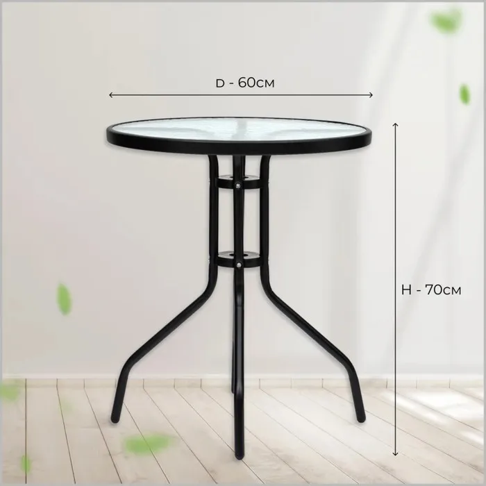 Стол садовый 60 х 70 см, цвет черный, столешница стекло — Характеристики