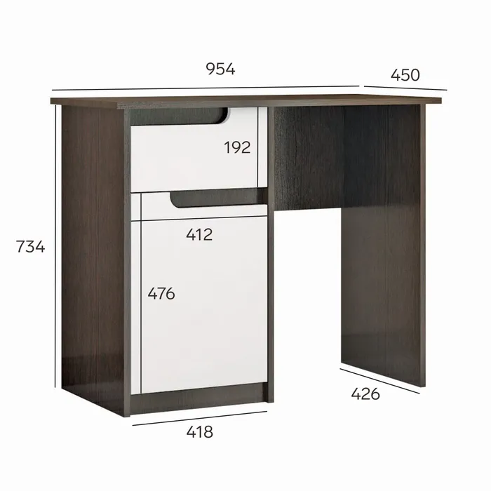 Стол туалетный Розалия - это изящный и функциональный элемент мебели, созданный для дополнения интерьера вашей спальни. Его габариты делают стол идеальным по размеру для размещения в комнате, обеспечивая удобство и доступность необходимых вещей. Корпус выполнен в классическом сочетании цветов венге и белого глянца, что придает элегантность и утонченность. Цвет венге добавляет теплоты и уюта, а белый глянец привносит нотки современного стиля и света в комнату. Конструкция включает в себя выдвижной ящик и закрытую нишу, предоставляющих достаточно места для хранения различных мелочей, таких как косметика. Ящик плавно выдвигается и закрывается благодаря качественным направляющим. Стол Розалия станет прекрасным дополнением к вашему интерьеру, сочетающим в себе эстетику и функциональность