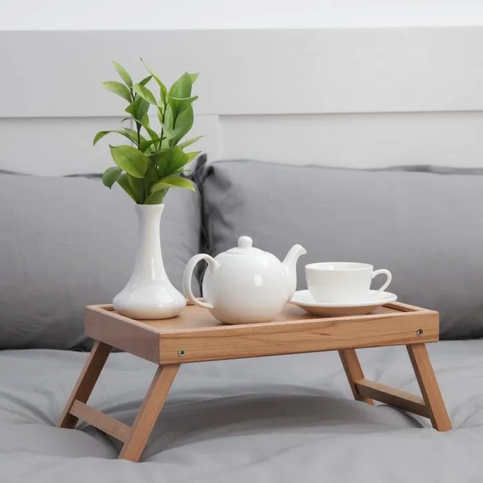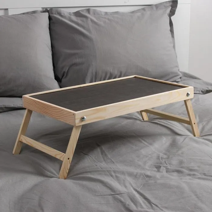 Стильный и компактный столик с небольшими бортиками по периметру позволит порадовать любимых завтраком в постель. Благодаря складным ножкам изделие легко переносить и удобно хранить.