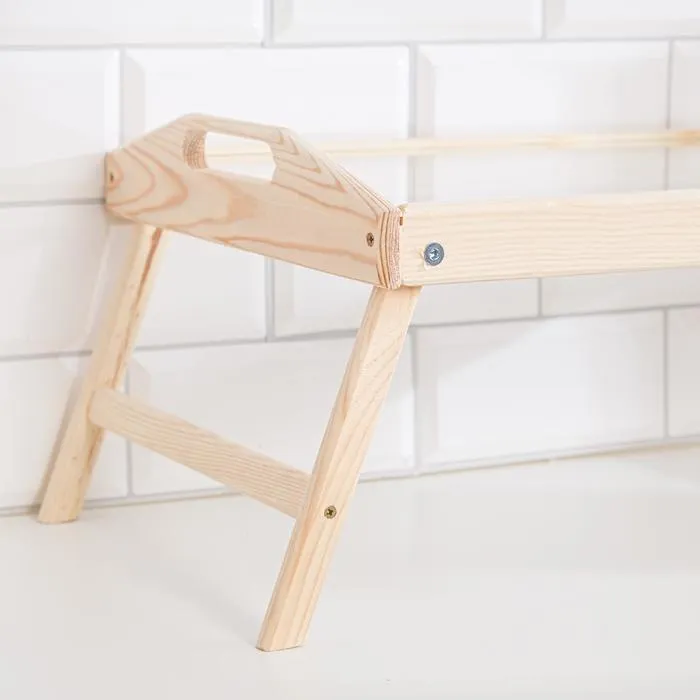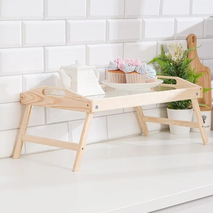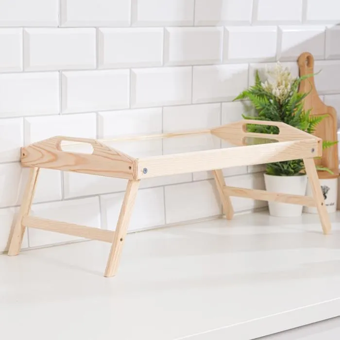 Стильный и компактный столик с небольшими бортиками по периметру позволит порадовать любимых завтраком в постель. Благодаря складным ножкам изделие легко переносить и удобно хранить.