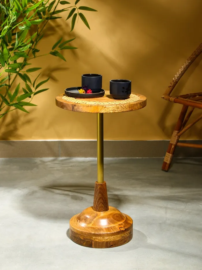 Столик кофейный 35х35х55 см, манговое дерево, алюминий, коричневый