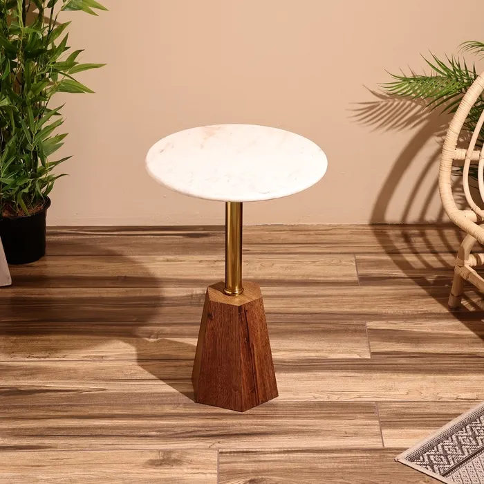 Столик кофейный 40х40х59 см, мрамор, алюминий, дерево
