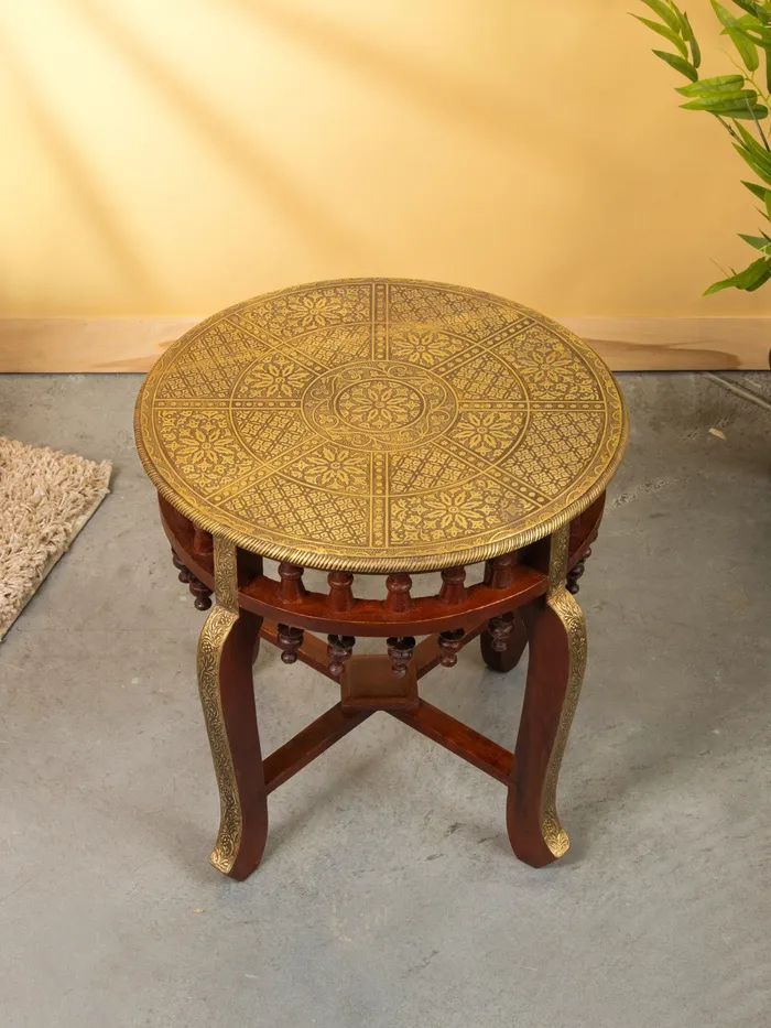 Классический кофейный столик из массива дерева диаметром 45 см и высотой 45 см. Идеально сбалансированные пропорции в сочетании с благородными золотисто-коричневыми оттенками. Готовая круглая конструкция - стильное дополнение для любой гостиной.