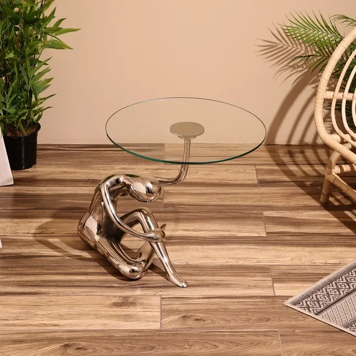 Столик кофейный 52х52х50 см, алюминий, стекло