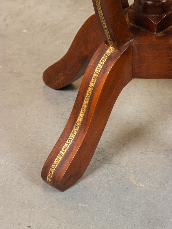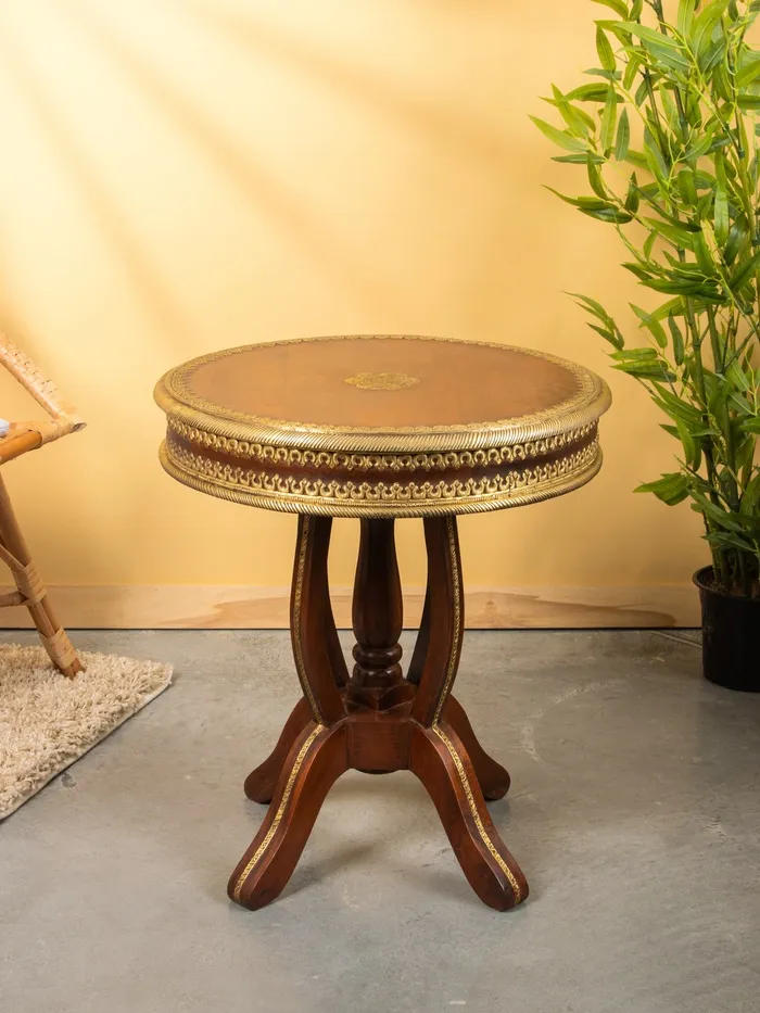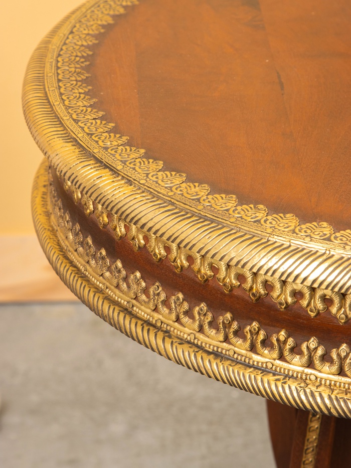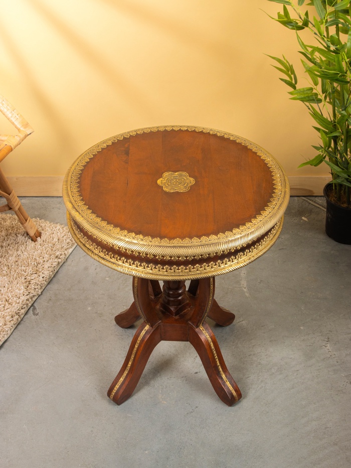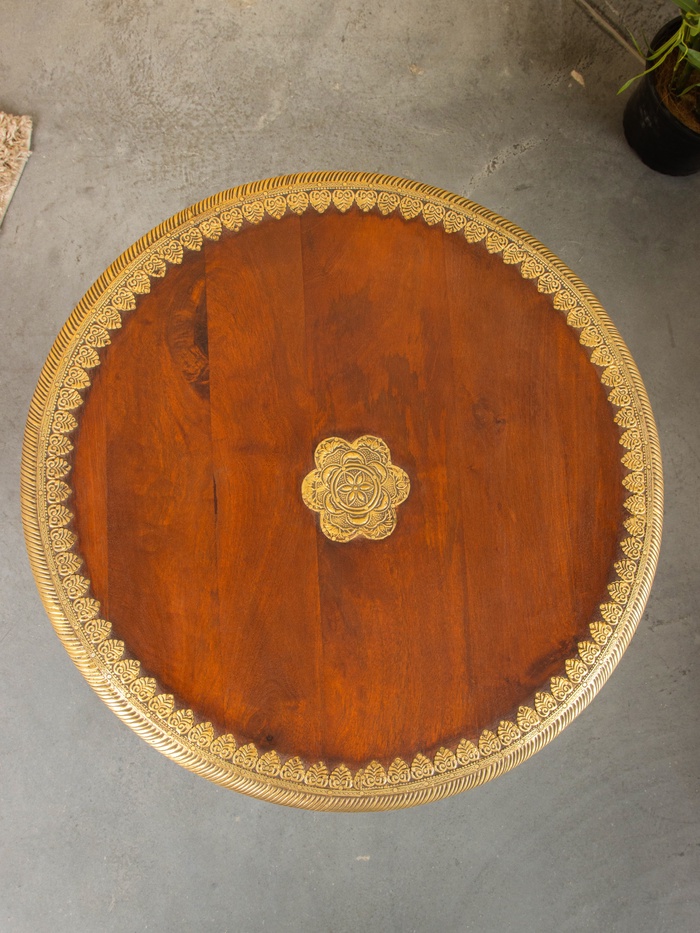 Круглый кофейный столик из дерева диаметром 53 см и высотой 60 см. Элегантная золотисто-коричневая гамма в сочетании с латунными элементами создает атмосферу уюта. Готов к использованию сразу после распаковки - идеальное решение для тех, кто ценит время.