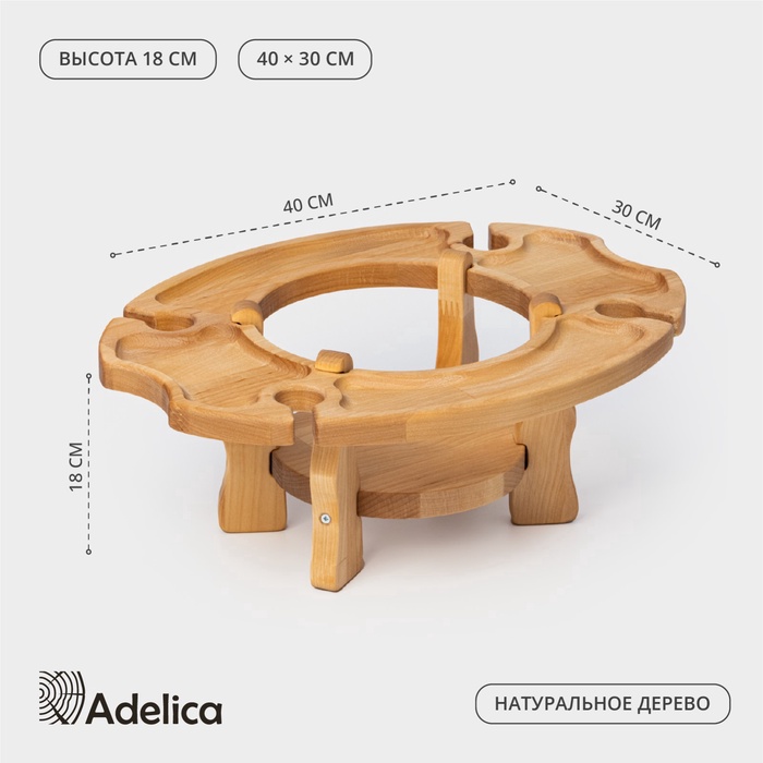 Столик - поднос деревянный для кальяна и вина Adelica, 40×30×18 см, берёза — Характеристики