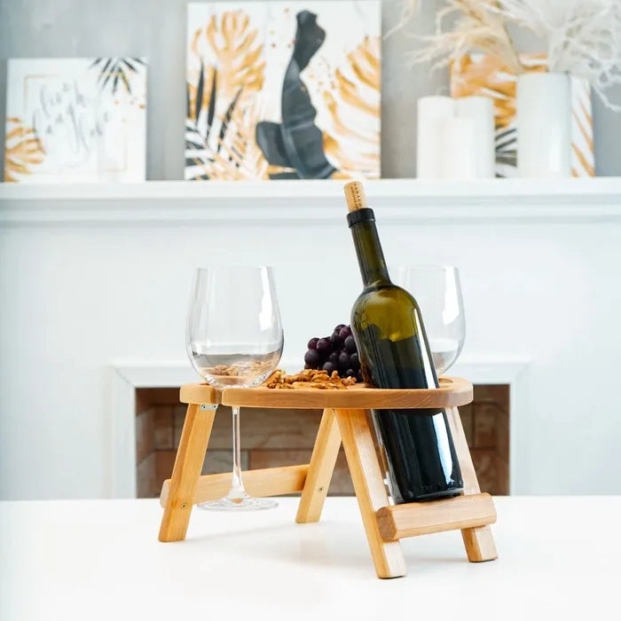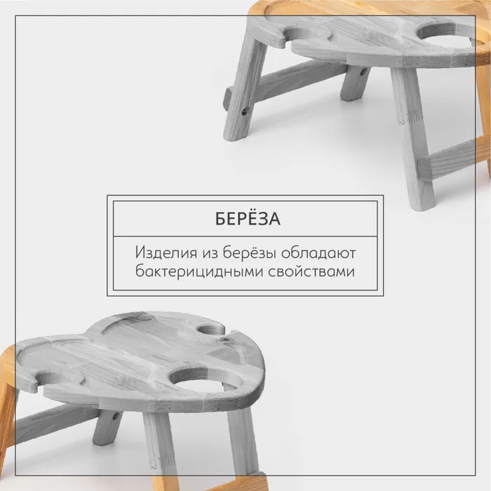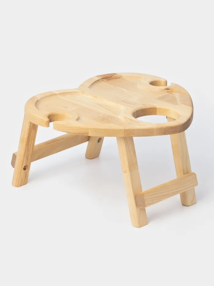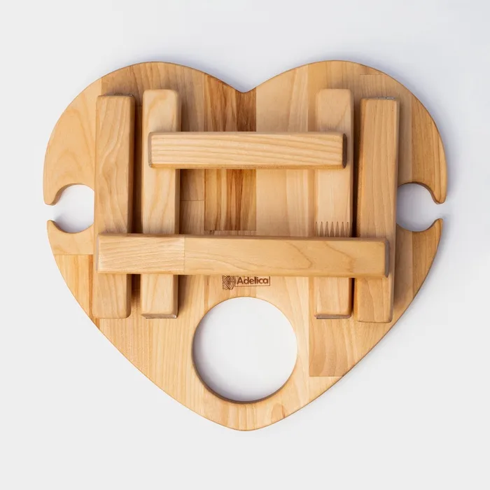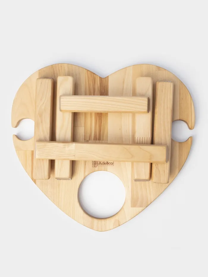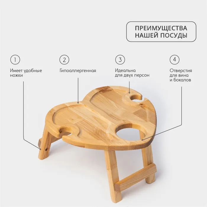 Столик - поднос деревянный для вина в форме сердца Adelica, с менажницей и складными ножками, на 2 персоны, d=30×1,8 см, берёза — Характеристики