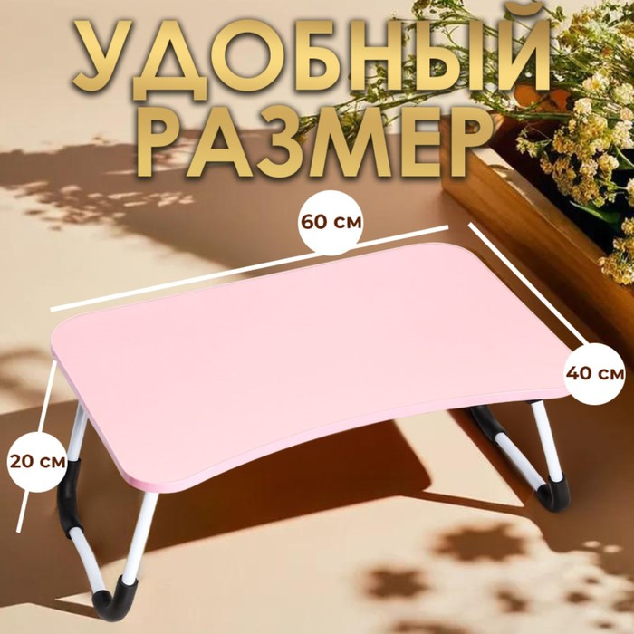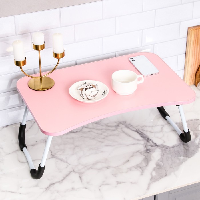 Столик - поднос для завтрака, для ноутбука, складной, розовый, 60х40 см