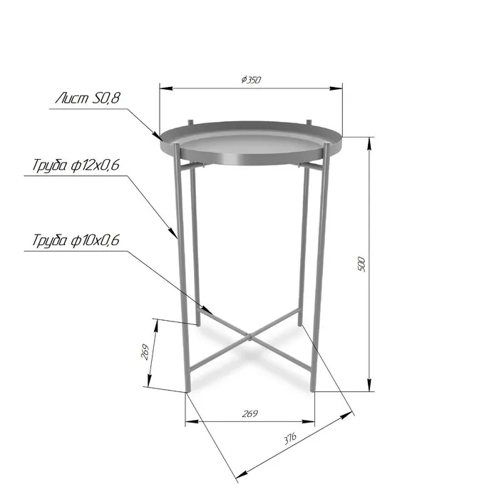 Столик журнальный, 376х376х515, Белый муар — Характеристики