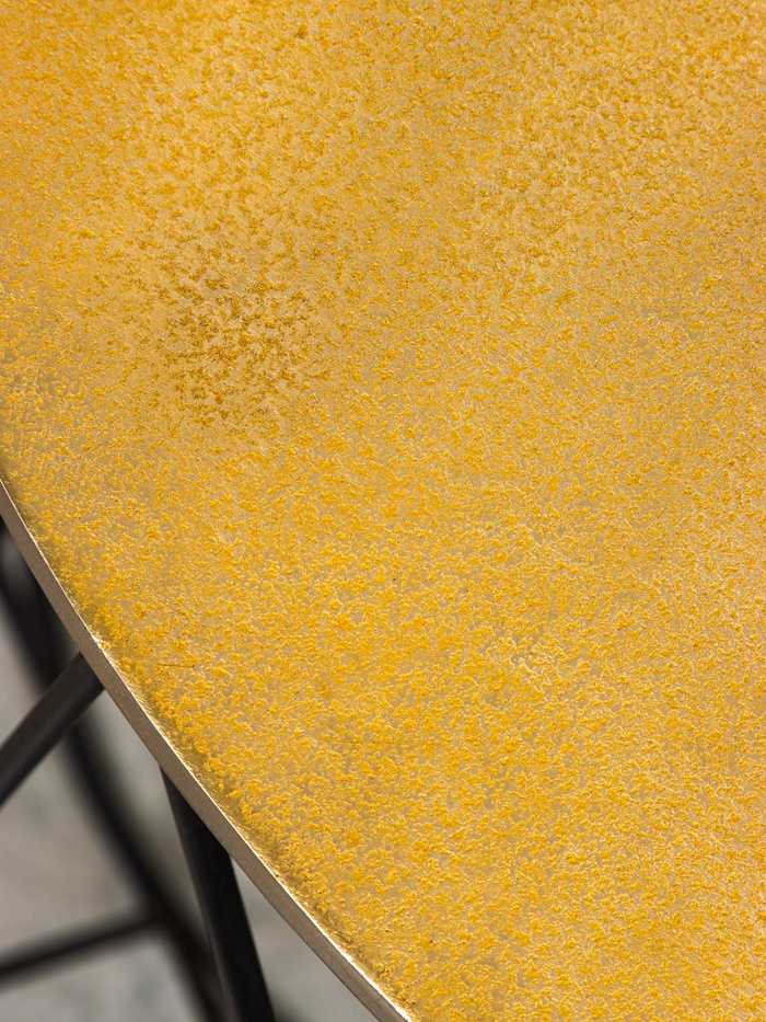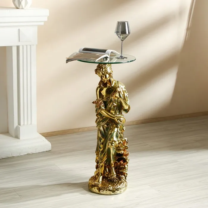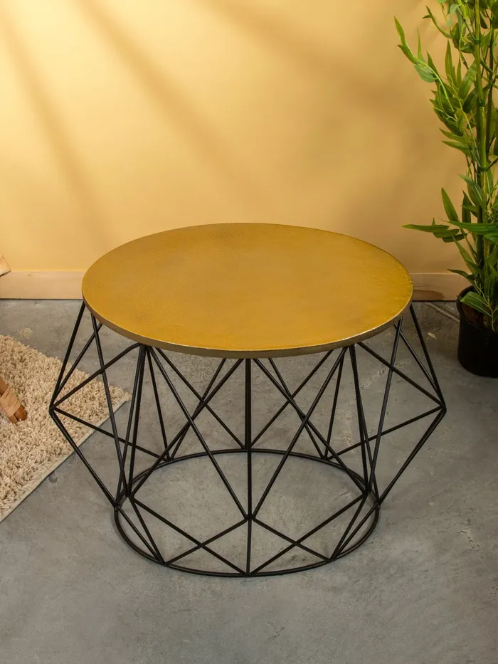 - Стильный контраст — золотистая столешница на черном ажурном основании