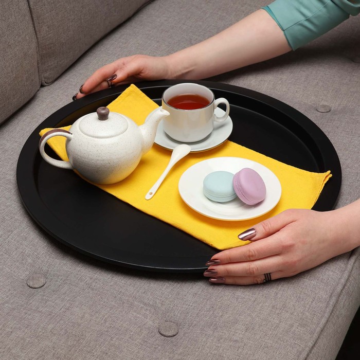 - Съёмная столешница – поднос: круглая столешница снимается и используется отдельно для подачи напитков и закусок.
